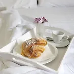 O pequeno-almoço bufê gratuito é servido todas as manhãs.